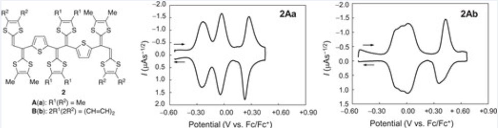 - "Synthesis and properties of 1,3-dithiole[6]dendralene analogs with