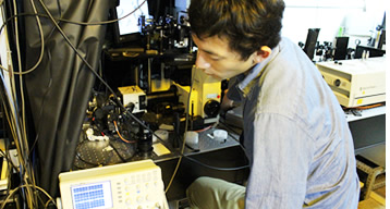 - 化合物にレーザーをあてて測定中です